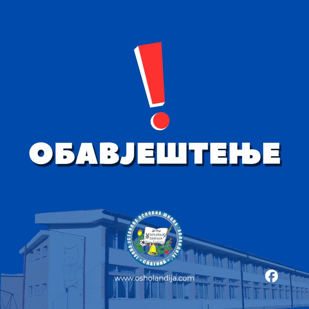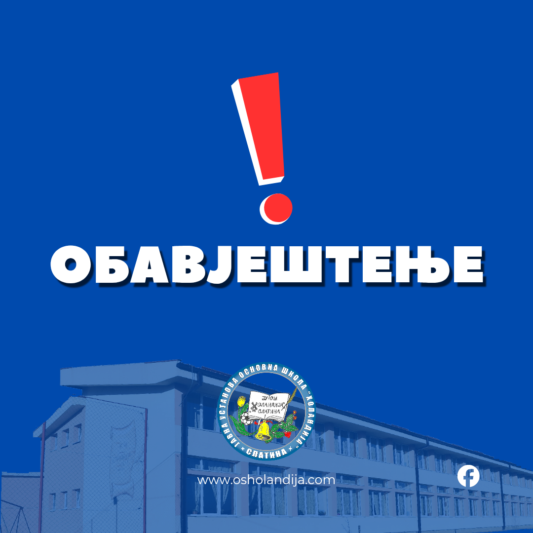 Сходно закључку Владе Републике Српске обавјештавамо вас да је у понедјељак, 16.2.2026. године нерадни дан у нашој школи. Са наставом настављамо у уторак, 17. фебруара 2026. године. Настава ће се изводити према раније утврђеном распореду часова.